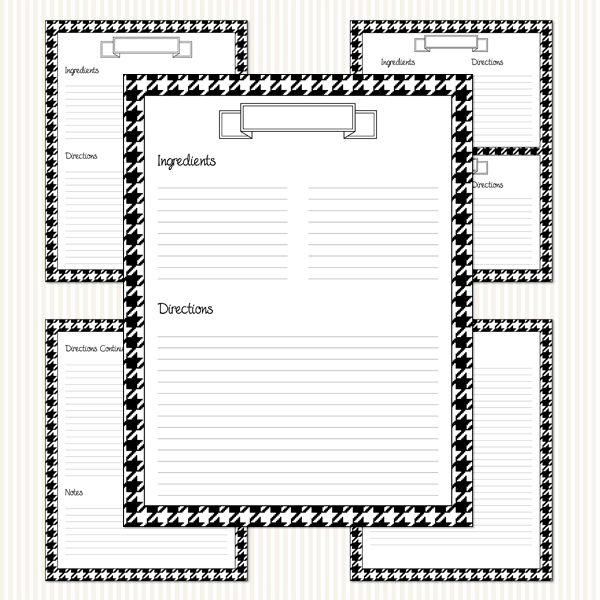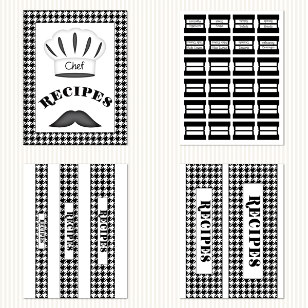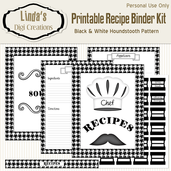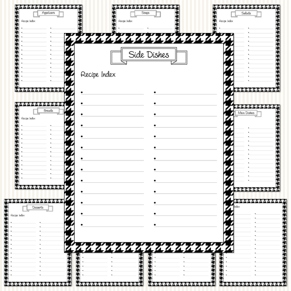 Printable Recipe Binder Kit_Black & White Houndstooth Pattern