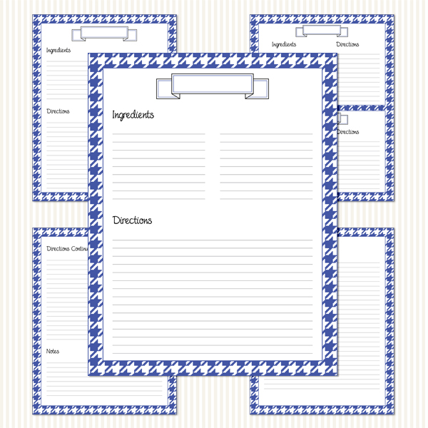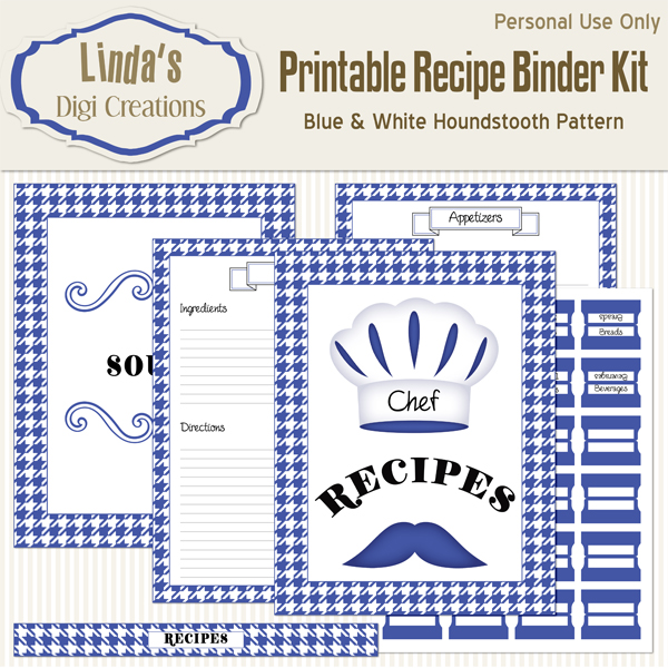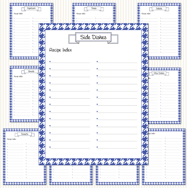 Printable Recipe Binder Kit_Blue & White Houndstooth Pattern