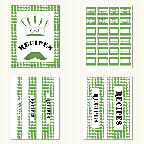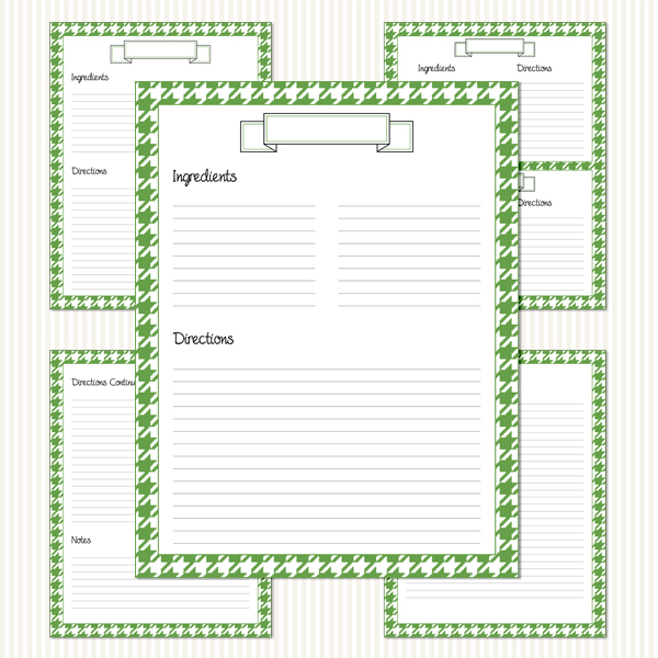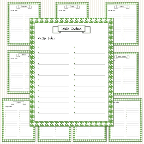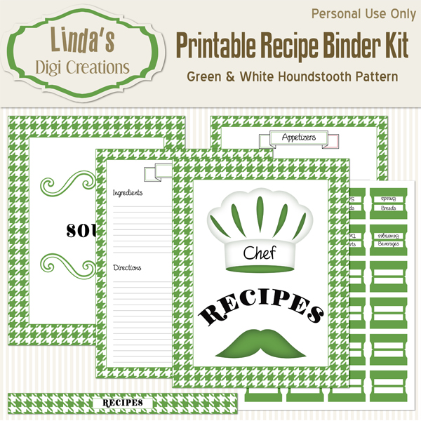 Printable Recipe Binder Kit_Green & White Houndstooth Pattern