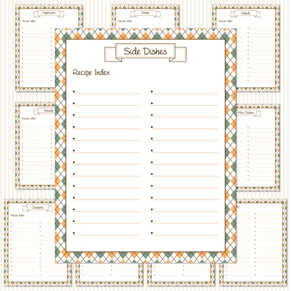 Organize all your favorite recipes with this beautiful printable recipe binder kit. Each page is 8.5"x11" (High resolution jpeg - 300dpi). Just print and handwrite your recipes, or you can add text in a photo editing software prior to printing.